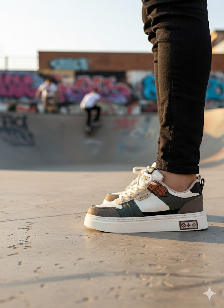 صباط رجالي خفيف و عصري، ديزاينو مستوحى من ستيل الشارع، و يجي بالوان فخمة مع خياطة نظيفة و تفاصيل راقية.